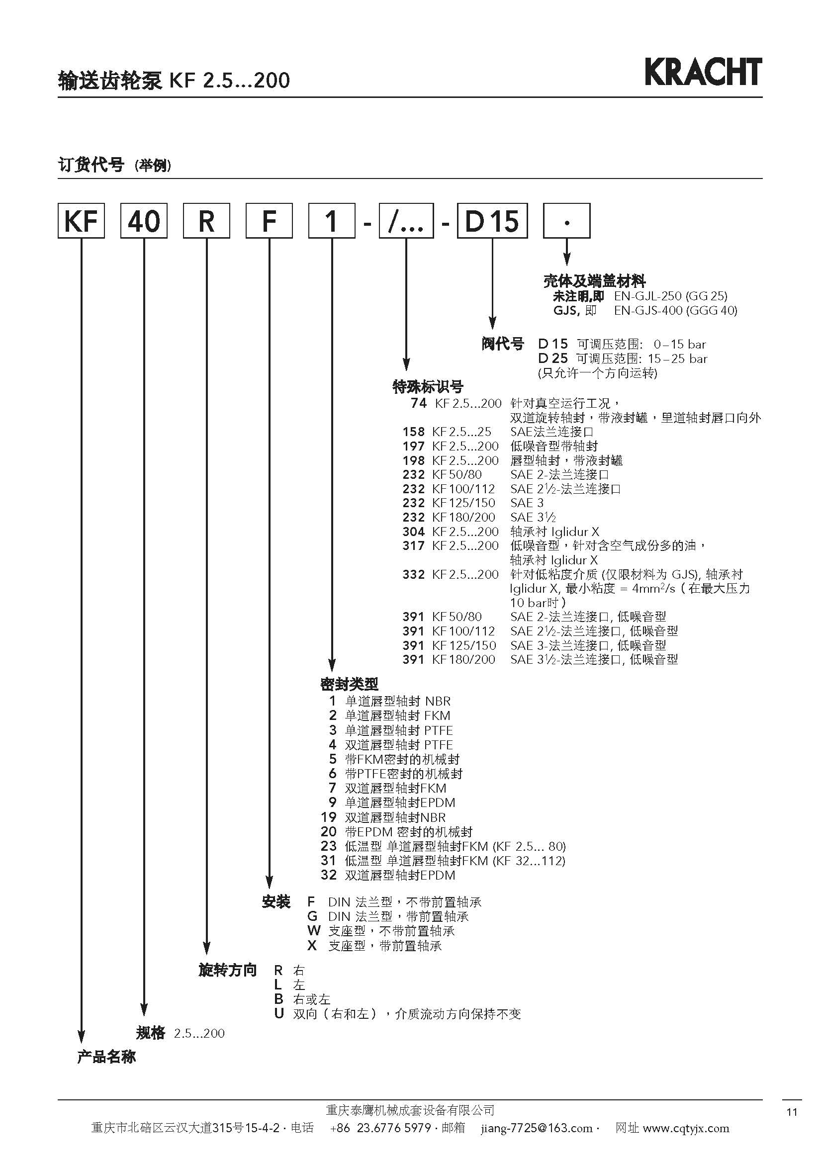 咨詢(xún):德國(guó)KRACHT齒輪油泵 KF40RF7/74-D15
