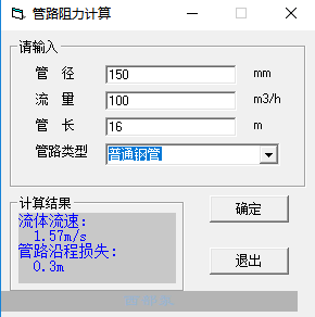 下圖為100口徑50m3/h管道16米的損耗計(jì)算結(jié)果